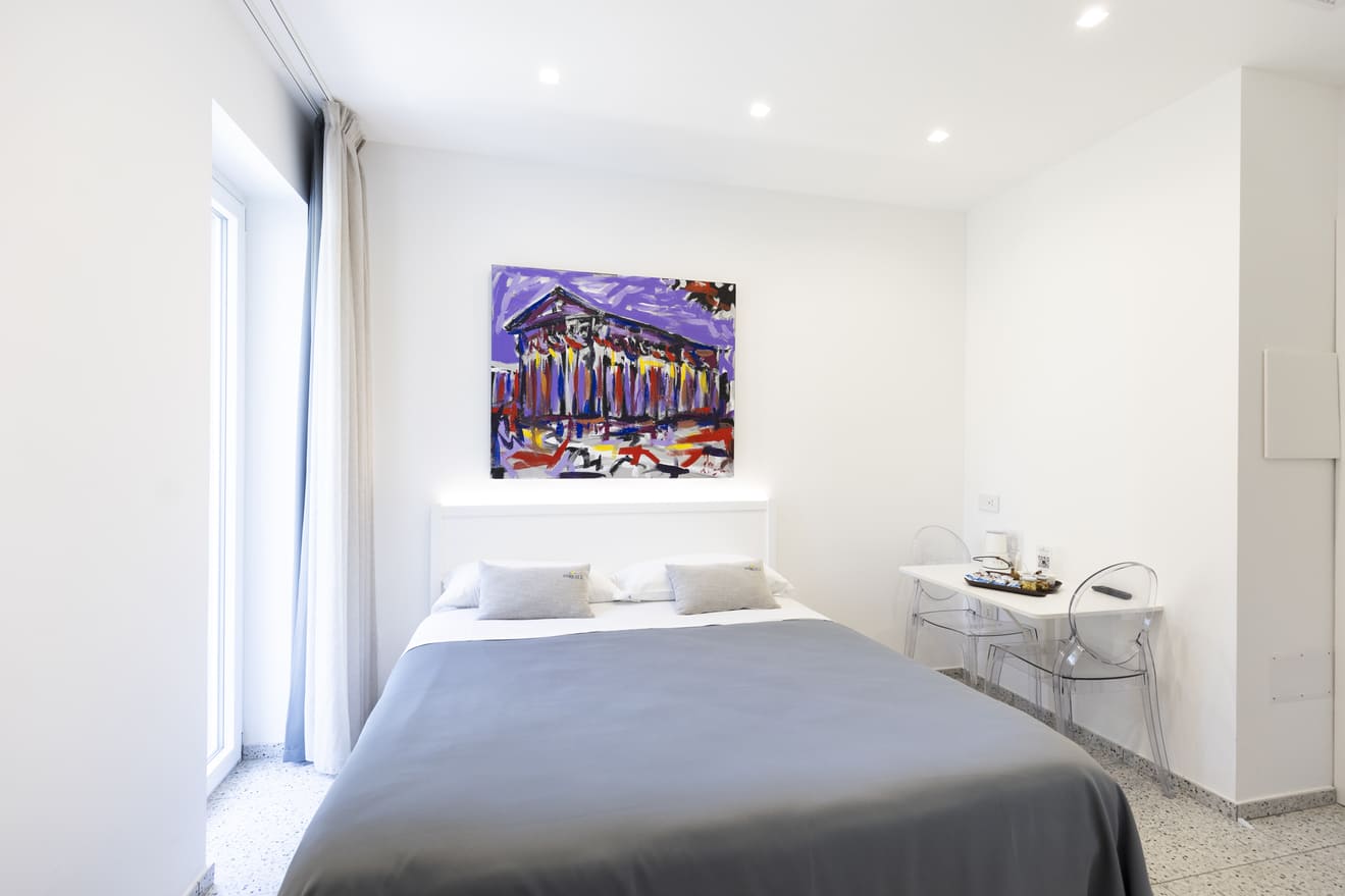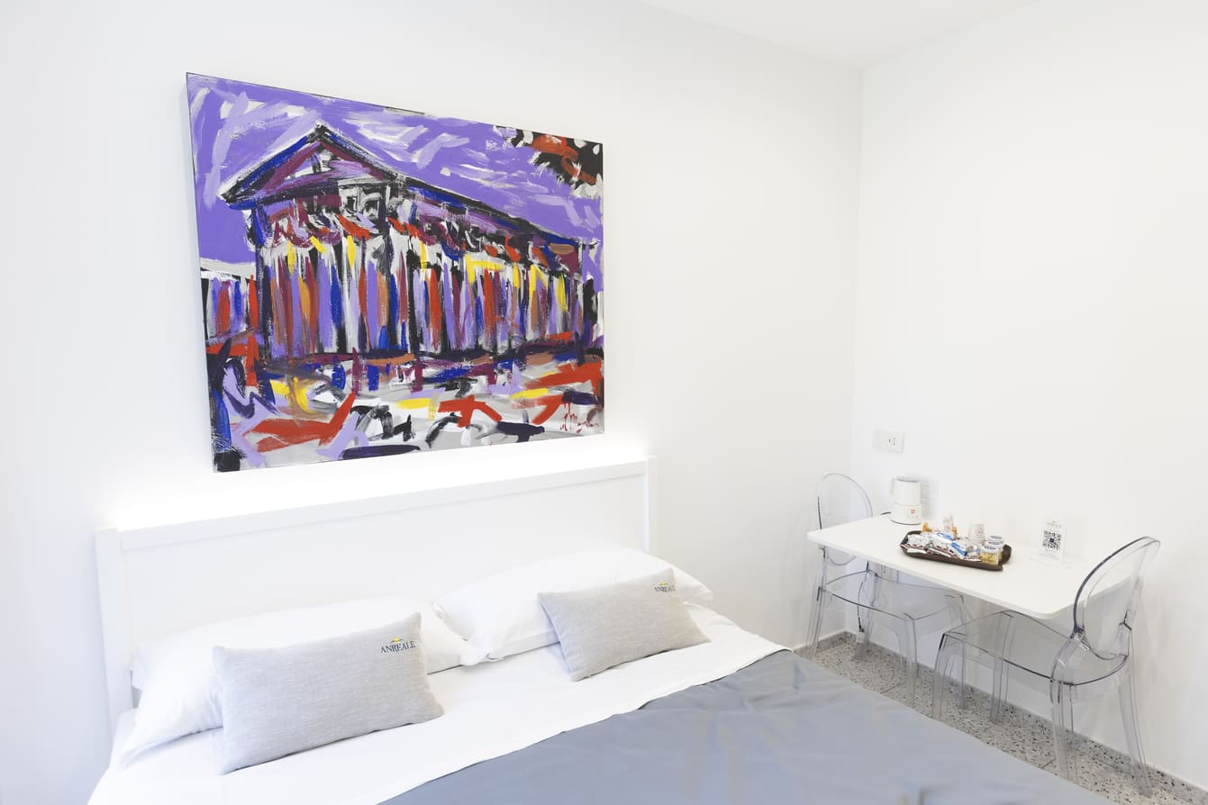 Poseidone è la stanza per la tua fuga romantica. Questa camera matrimoniale si affaccia sul porto di Agropoli con balcone attrezzato con tavolo e sedie per momenti di puro relax vista mare.